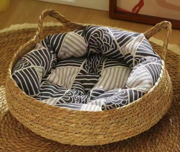 Il nostro nido per animali in tessuto di vite fatto a mano è realizzato al 100% in cotone , garantendo il comfort e il calore del tuo amico a quattro zampe durante l'inverno.
